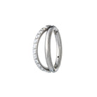 The Solenne Clicker is made of implant-grade titanium and features two rows fanning out, one adorned with a row of pavé cubic zirconia stones and one plain.