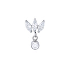 This end is composed of a stunning triplet of marquise-cut cubic zirconia stones and a round, bezel-set cubic zirconia stone charm.