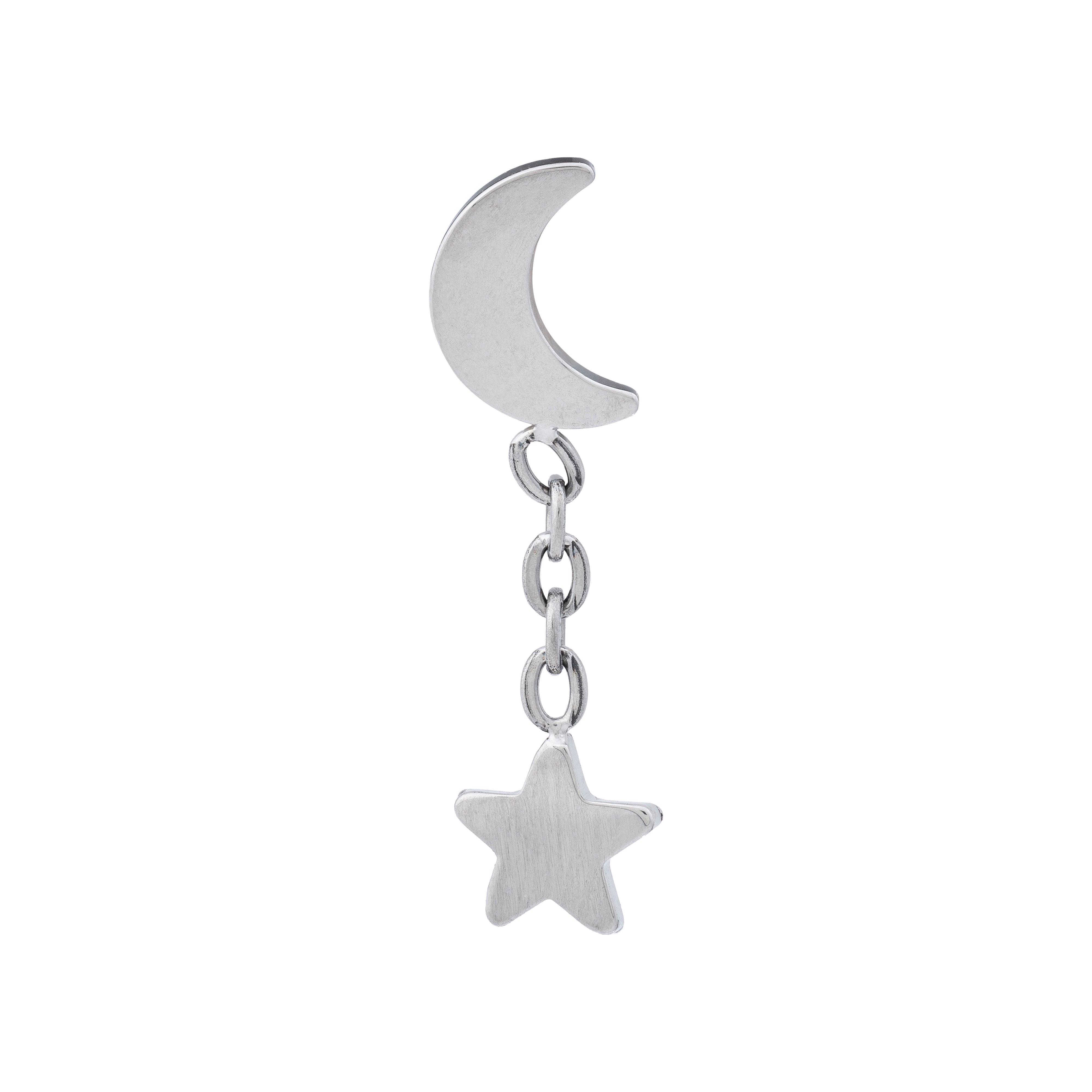 A simple crescent moon shaped end with a cute star charm hanging from a chain.