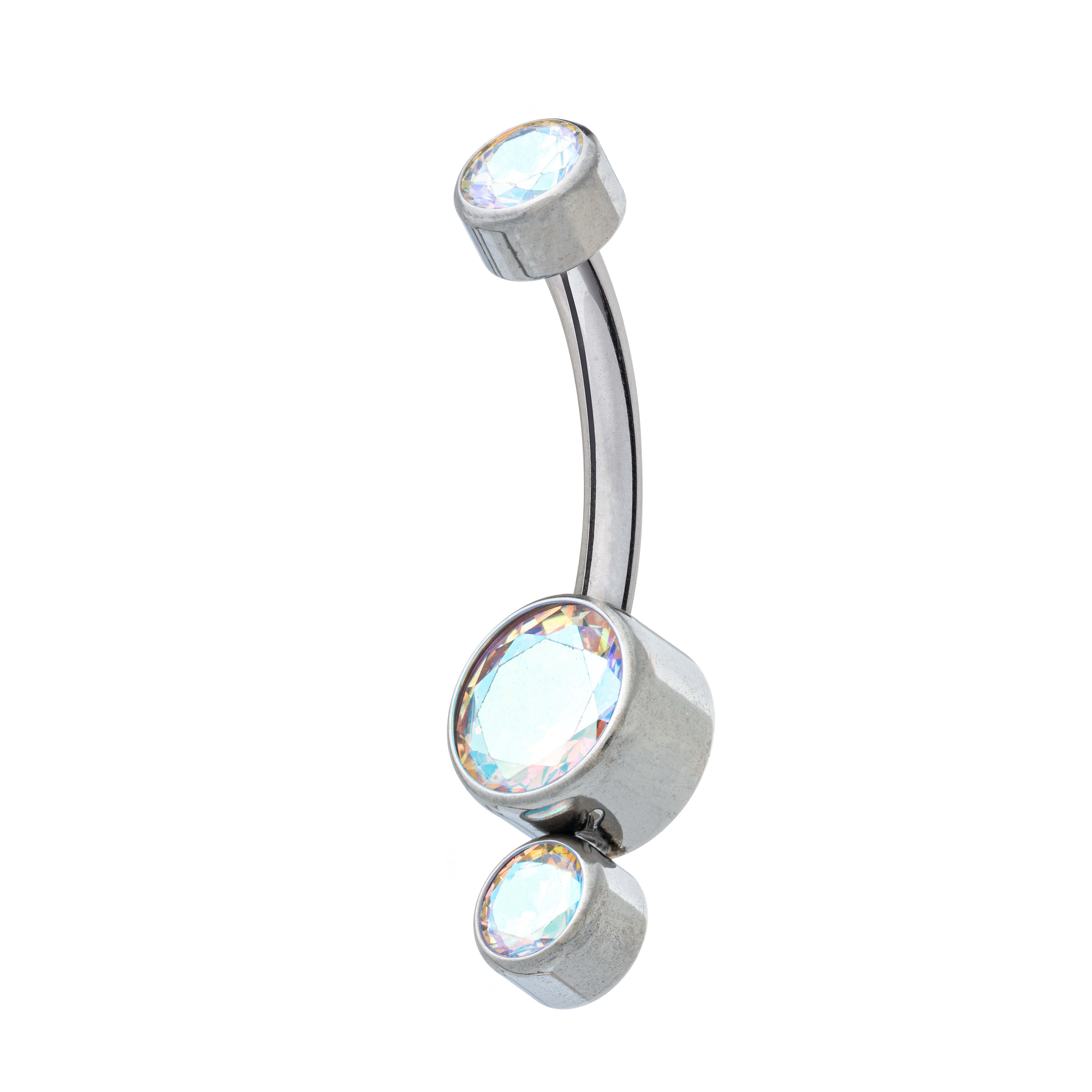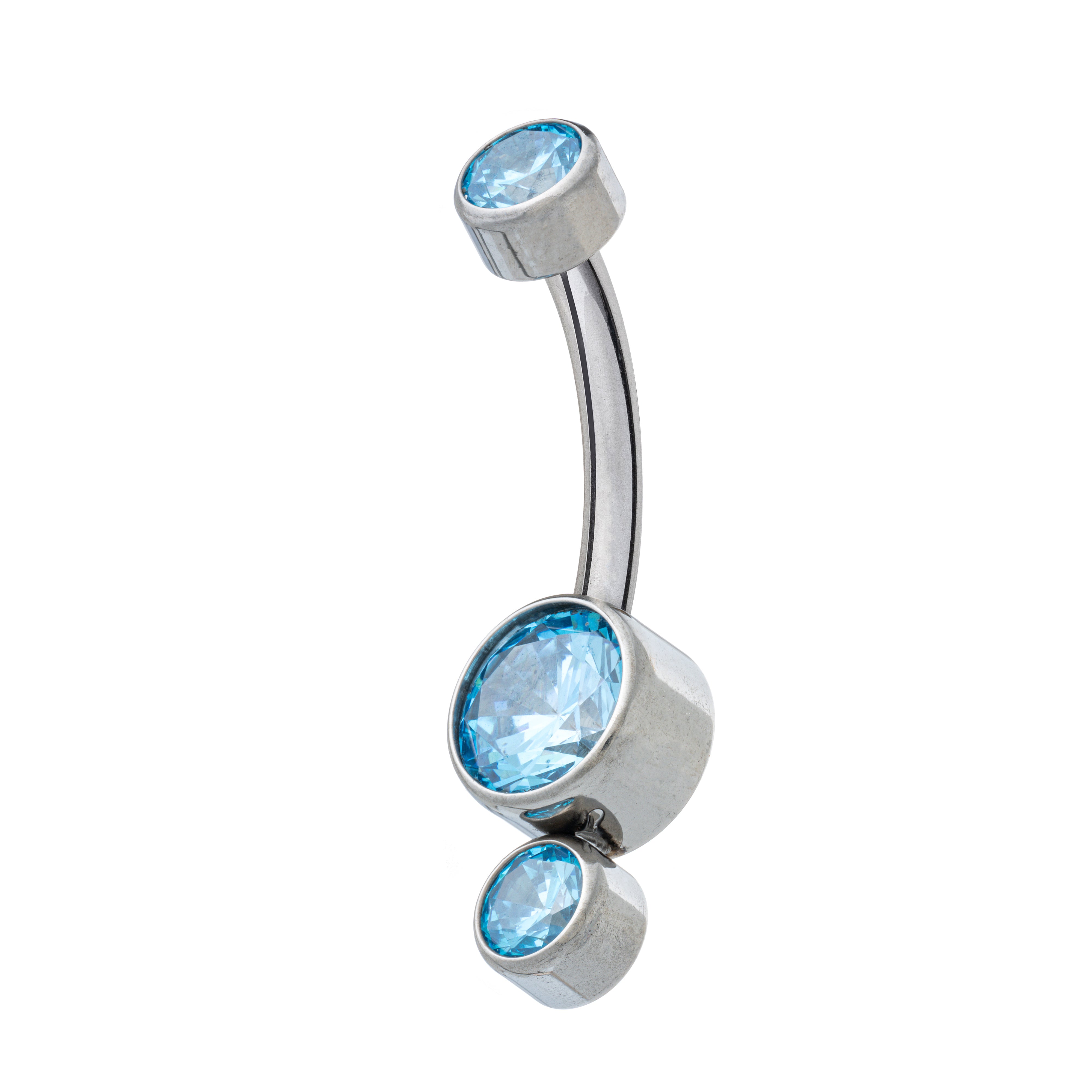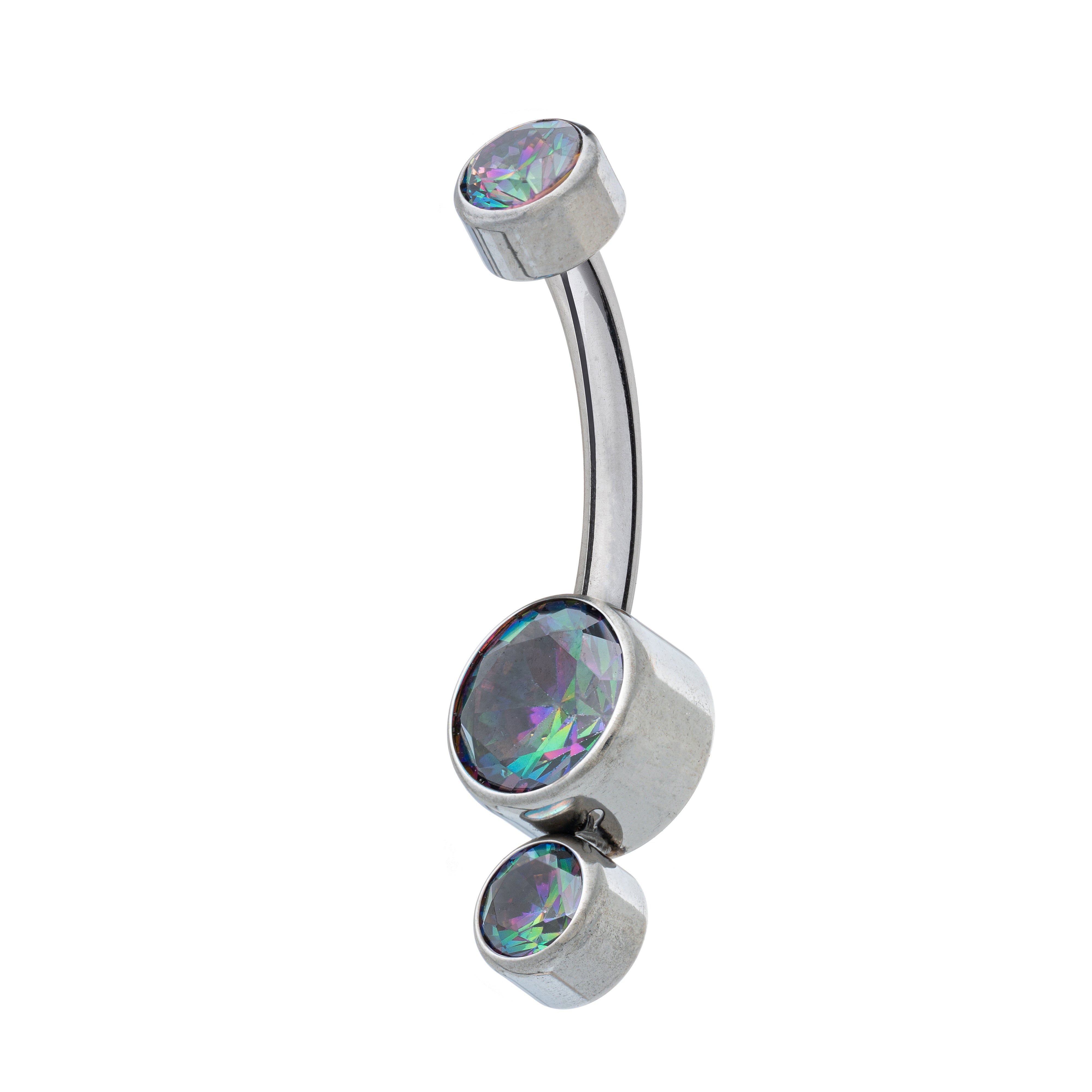 Premium cubic zirconia stones showcased in a simple flat-back navel banana, polished to perfection. Available in five stunning colours.
