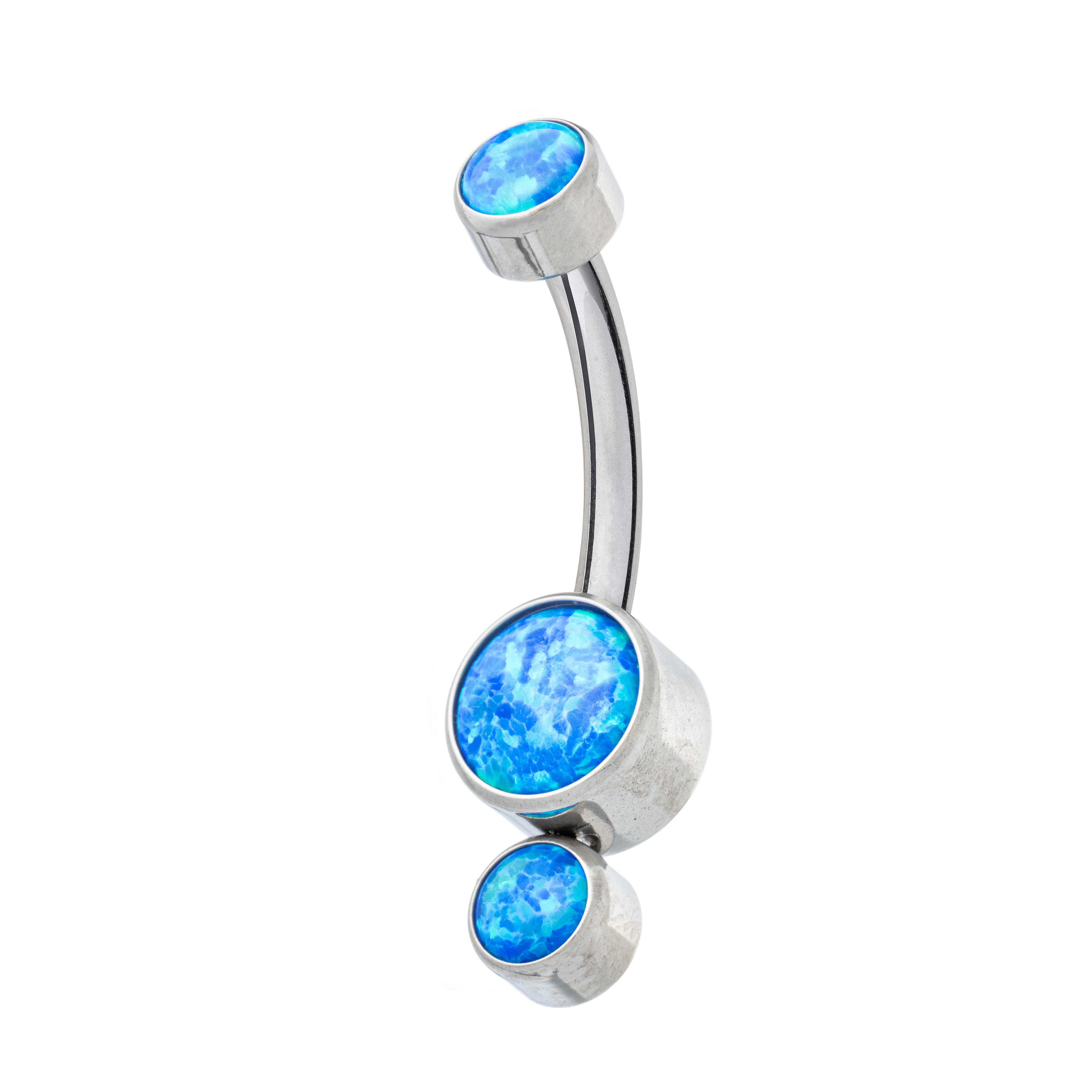 Beautiful lab-grown opal stones showcased in a simple flat-back navel banana, polished to perfection.
